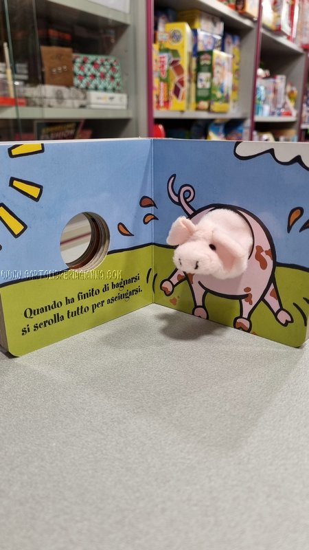 Chi ama fare il bagno nelle pozzanghere? Scoprilo leggendo questa storia, e divertiti ad animare il pupazzetto con il ditino.