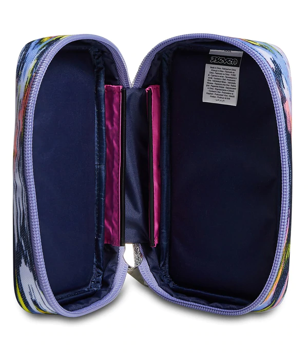 Il nuovo astuccio Seven Speed Case è dotato di una comoda apertura tramite un’unica zip e di tutto il materiale necessario per affrontare al meglio la tua giornata di scuola. Lo puoi montare e smontare a tuo piacere. Infatti, all’interno, ha plance con elastici porta penne e matite, che puoi rimuovere del tutto, permettendo in questo modo il lavaggio dell’astuccio. Comodo, pratico e versatile, non ti resta che abbinare il tuo nuovo astuccio Speed Case a uno zaino o a un trolley Seven.