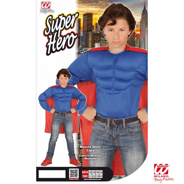 CAMICIA BAMBINO CON MUSCOLI E MANTELLO SUPER HERO WIDMANN