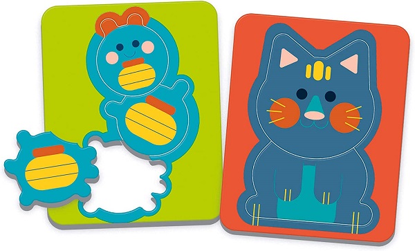 • Un puzzle per piccolissimi, e quindi senza incastri, che si compone di due o tre pezzi posizionati all’interno di una cornice.