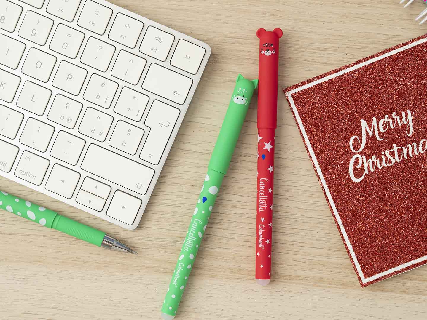 La famiglia delle penne gel cancellabili Cancellotte si allarga con due nuovi personaggi, un tenero ghepardo rosso e un draghetto verde. Le Cancellotte sono l’ideale per bambini che frequentano la scuola primaria, ma sono perfette anche per chiunque voglia aggiungere un tocco di colore e tenerezza alle proprie giornate. La gomma a semisfera rimuove facilmente l’inchiostro termosensibile senza danneggiare il foglio. Il fusto soft touch garantisce morbidezza al tatto.