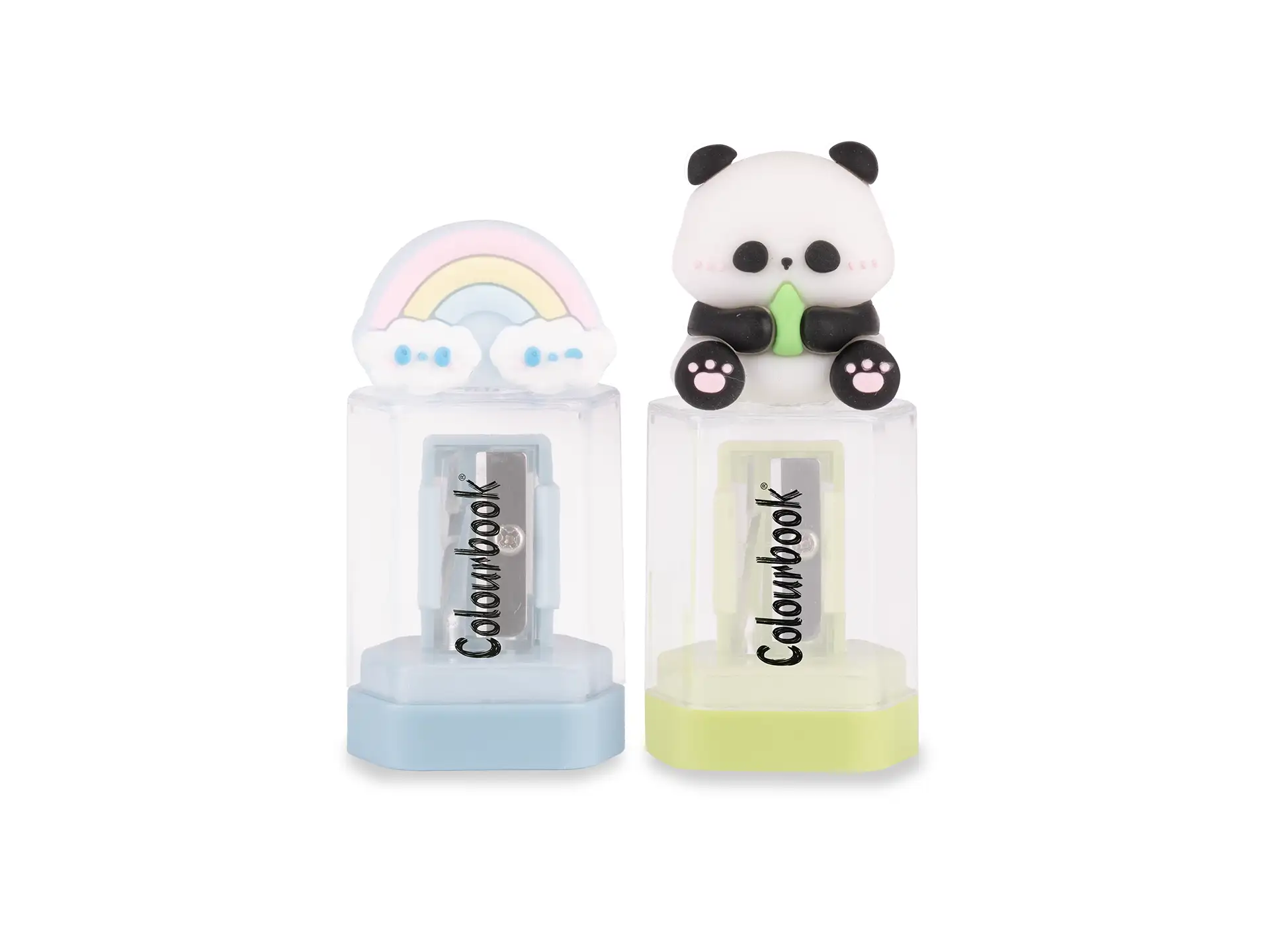 Scopri i temperini Sharpy con adorabili topper gommati a forma di arcobaleno e panda! Con un foro da 3,3 mm, sono ideali per temperare matite con precisione.