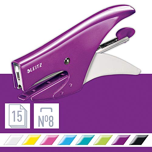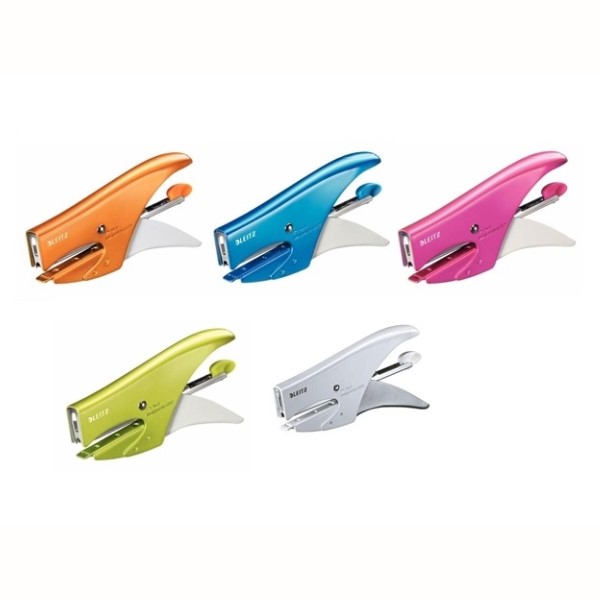 Cucitrice a caricamento posteriore costruita interamente in metallo. Il suo design ergonomico permette una comoda presa e consente di pinzare senza fatica anche un numero elevato di fogli.