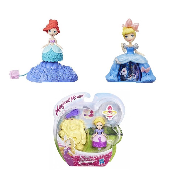 Dispinibili Rapunzel e Ariel danzanti: posizionale sulla loro base e tira la cordicella per vedere la tua principessa danzare!
