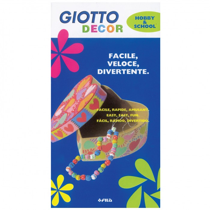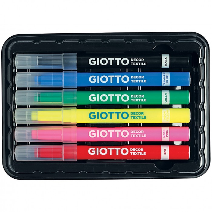 Fashion style autoprodotto. Trasforma il tuo stile, personalizza e reinterpreta tshirt, jeans o sneackers con Giotto Decor Textile! Espressione creativa da indossare, i pennarelli speciali decorano qualsiasi tipo di tessuto e sono disponibili in 8 colori classici e 4 fluorescenti, tutti a resa permanente e resistenti a lavaggi in lavatrice a 40°. A base acqua, atossici e sicuri, facilmente lavabili dalle mani, sono dotati di una speciale punta a pennello ideale per i tessuti, di un pennino bloccato, tappo di sicurezza e cappuccio ventilato. Si consiglia di passare il ferro da stiro tiepido sul decoro, per fissare il colore.