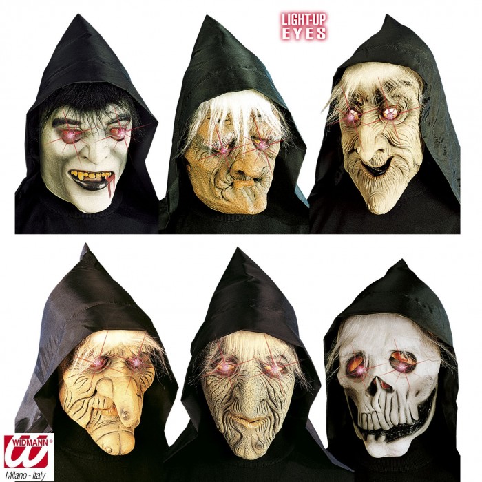 MASCHERA CON OCCHI LUMINOSI, CAPPUCCIO E CAPELLI