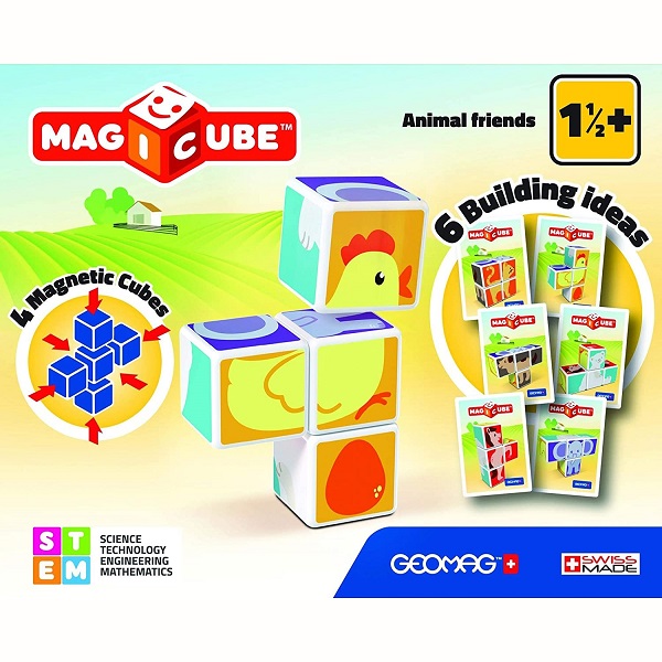 Gioco creativo con i cubi magnetici adatto ai bambini dai 18 mesi.