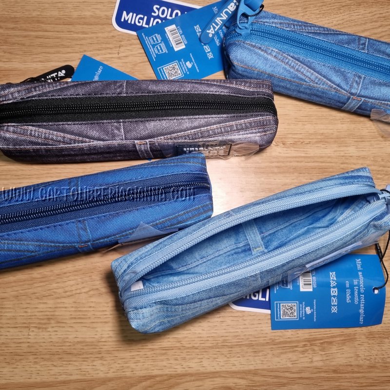 Nuova linea in tessuto con stampa effetto jeans.