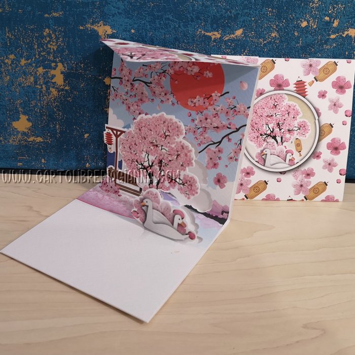 L’originale chiusura “a busta”, rivela all’apertura un pop-up bidimensionale che sorprende il festeggiato!