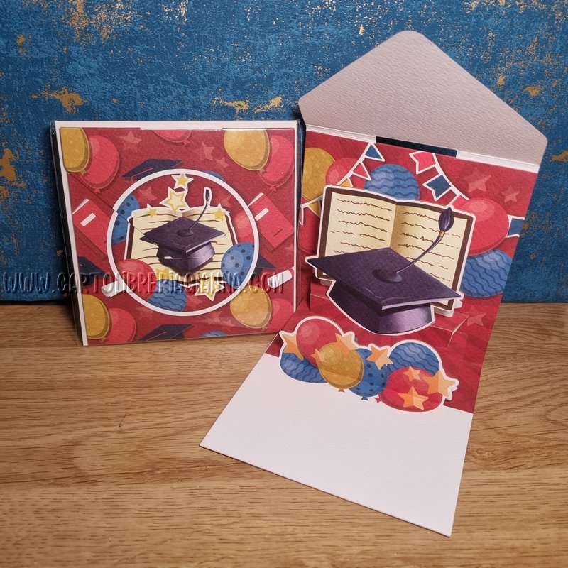 L’originale chiusura “a busta”, rivela all’apertura un pop-up bidimensionale che sorprende il festeggiato!
