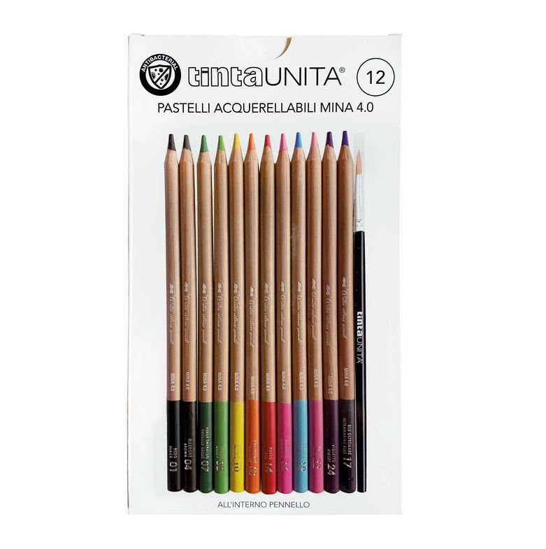 Pastello acquerellabile in legno con fusto verniciato dello stesso colore della mina. 1 Pennello incluso. Diametro mina 4 mm.