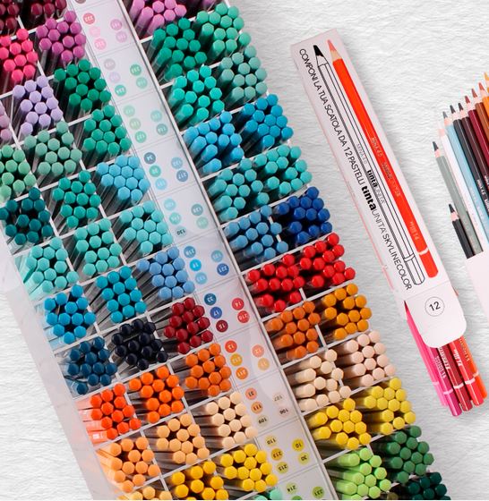Pastello legno esagonale con fusto verniciato dello stesso colore della mina, in 110 colori tutti diversi. Diametro mina 4 mm. Pastello personalizzabile con una normale penna. Da oggi puoi acquistarli anche singoli o in scatole personalizzabili da 12 colori.