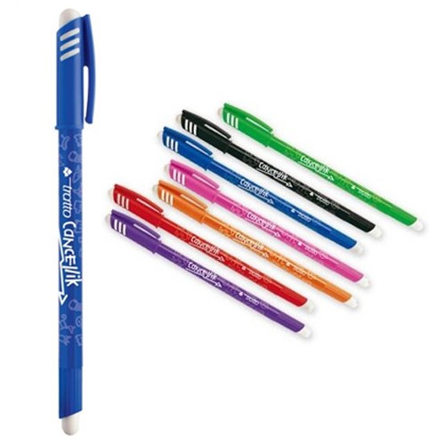 Penna con inchiostro cancellabile e doppia gomma molto resistente. Dotata di cappuccio anti-soffocamento, di clip e di spazio per l’inserimento del proprio nome per personalizzarla. L’inchiostro della penna è facilmente cancellabile e si fissa in modo permanente sulla carta dopo 24 ore. Larghezza del tratto di scrittura: 0,4 mm. Disponibile in 10 vivaci colori: blu, rosso, nero, verde, fucsia, arancione, viola, azzurro, verde chiaro e giallo. Codice ean presente sul singolo prodotto.