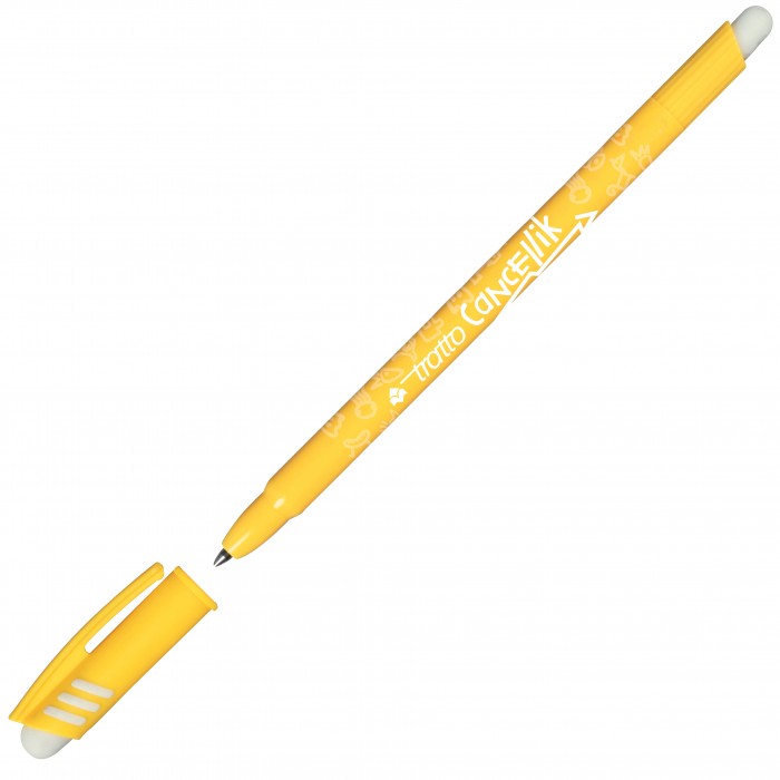 Gli errori hanno le ore contate. La linea Tratto Cancellik si arricchisce di due importanti novità, la doppia gomma e il design innovativo del cappuccio, per renderla ancora più accattivante! Le gomme sono nel cappuccio e nel corpo della penna e hanno un profumo gradevole. Tratto Cancelik permette di cancellare la scrittura fino a 24 ore dopo, è dotata di cappuccio antisoffocamento che ne permette l’utilizzo in estrema sicurezza e di spazio per la personalizzazione del nome che permette di renderla riconoscibile. Disponibile in 10 colori vivaci: blu, rosso, nero, verde, azzurro, fucsia, arancione, viola, giallo, verde chiaro. Nella busta da 4 penne e nei blister è possibile acquistare Tratto Cancellik con la maxi gomma triangolare Tratto Cancellik, disponibile in 6 varianti colore, studiata appositamente per cancellare dal foglio ogni traccia di inchiostro in modo preciso grazie ai suoi lati spigolosi.