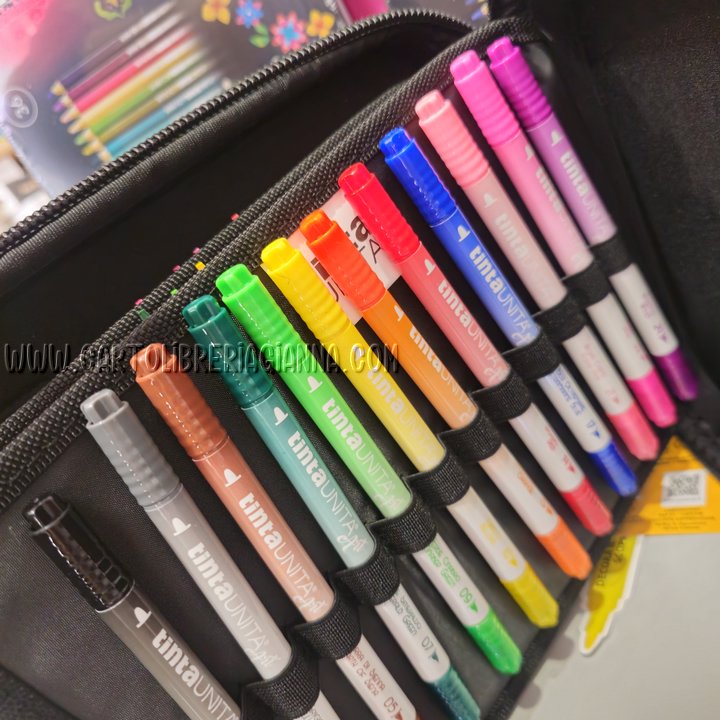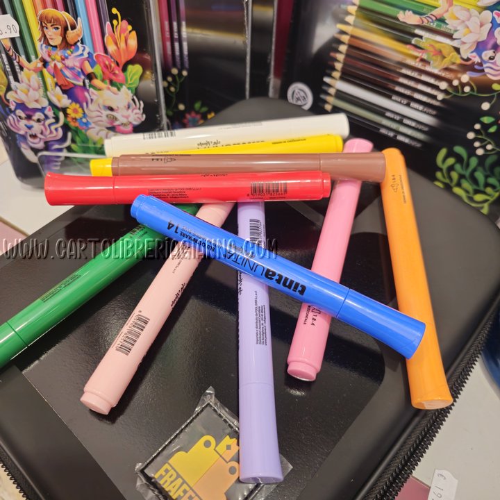 Oltre al contenuto dell’astuccio è compreso un solo Art Marker Tinta Unita spedito casualmente.
