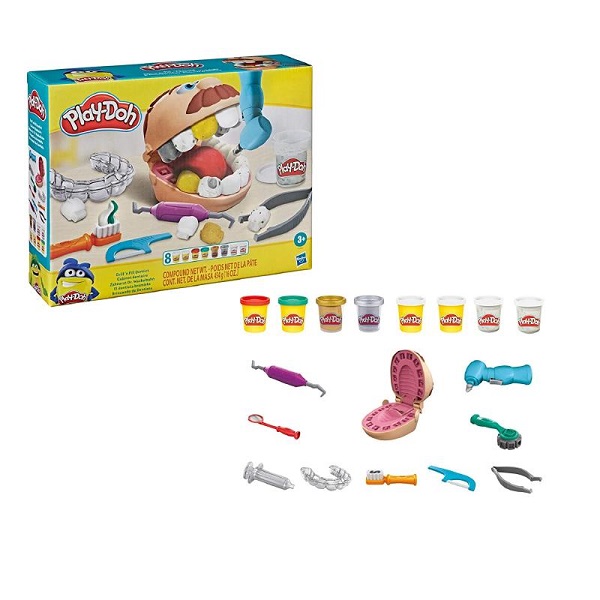 Dottore, curi subito quel paziente prima che gli venga mal di denti! Anche se può spaventare un po’ andare dal dentista, i bambini potranno assumere il controllo della situazione e far finta di essere un dentista con questo playset Play-Doh.