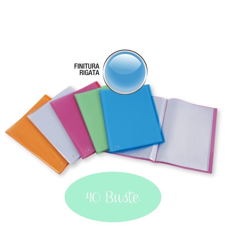 Portalistino “Lumina” , 40 interni fogli fissi a buccia d’arancia anti-riflesso .