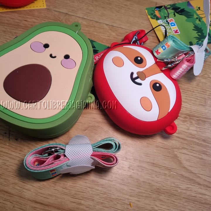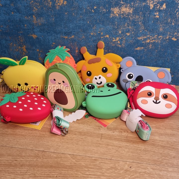 Realizzata in silicone super spessorato con tracolla in tessuto allungabile. Big tirazip in micro iniezione personalizzata.