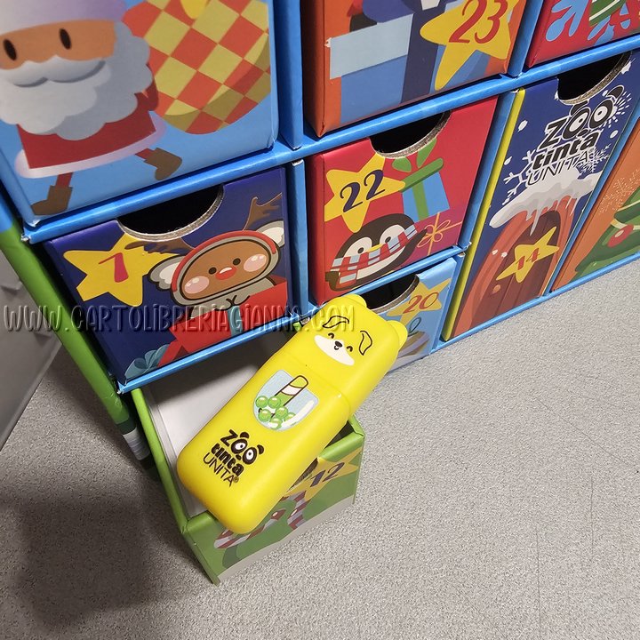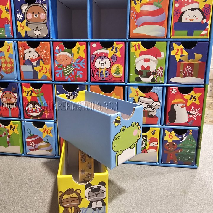 In più il calendario può diventare un comodissimo organizaer da scrivania inserendo i cassetti al contrario!