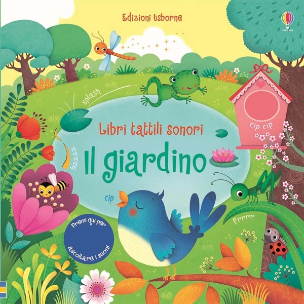 Un incantevole libro con tasti sonori incorporati nelle pagine e tanti percorsi tattili per riconoscere i suoni del giardino e dei suoi abitanti.